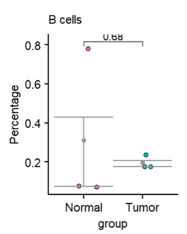 各比例数值并非相互独立,也不服从正态分布假定(取值范围,方差均值依赖)。如果希望得到 对照-实验组之间cell_type composition的差异显著性,对该问题使用t test是不合适的,应该使用卡方检验。